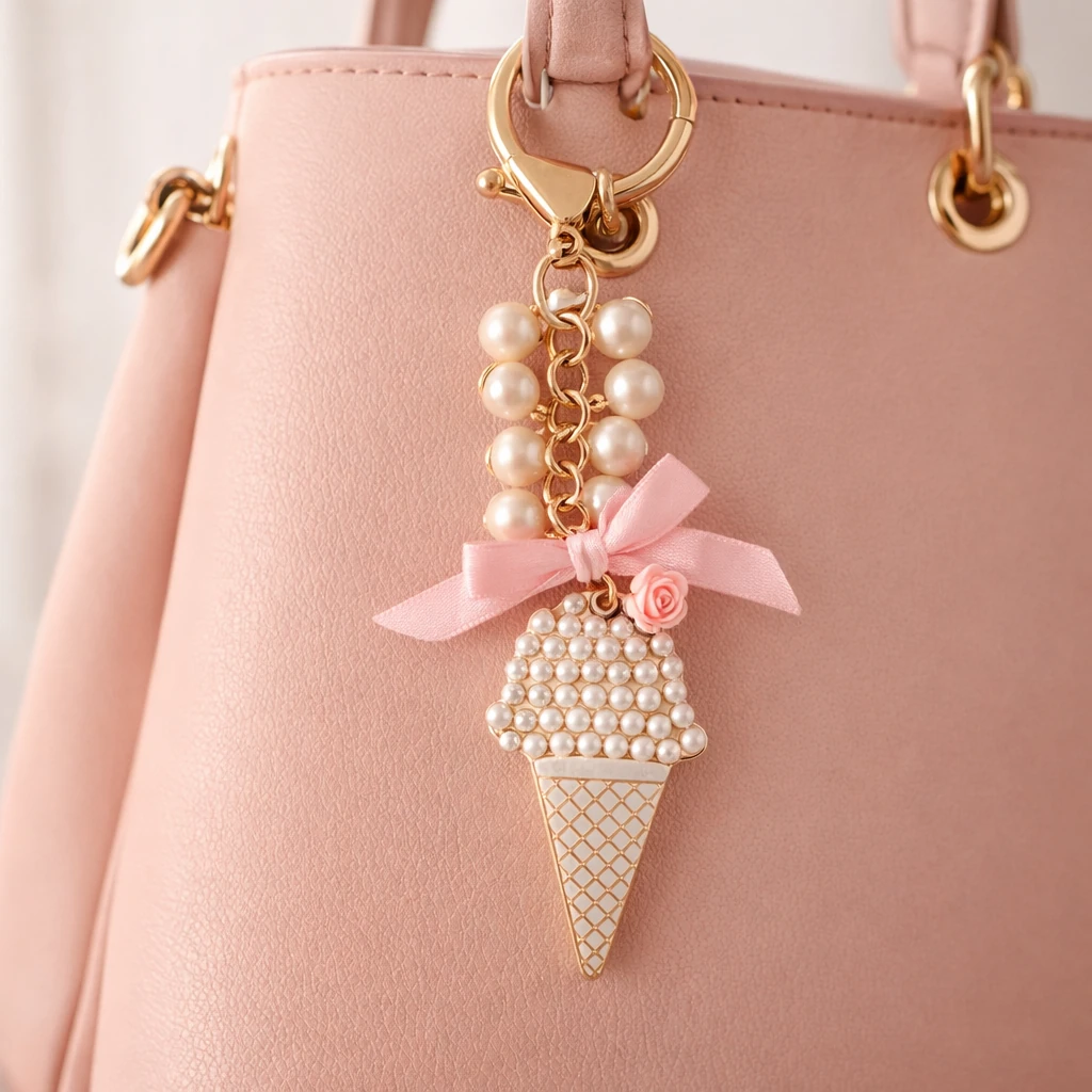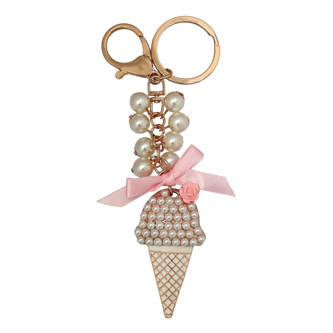 آویز کیف فلزی مدل بستنی قیفی و مروارید | کد 7020001